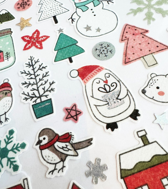Textiel Kerststickers met Vilt Finish - 35 stickers