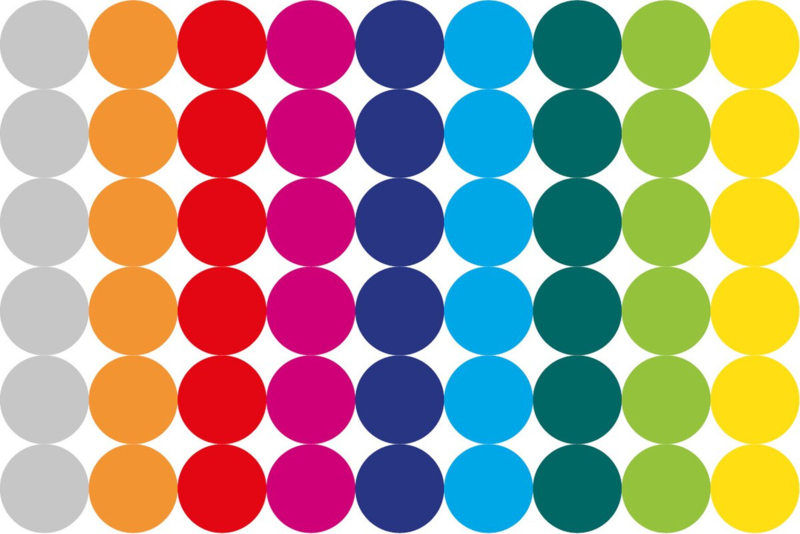 Gekleurde stippenstickers voor overzicht, ordening en kleurcodering
