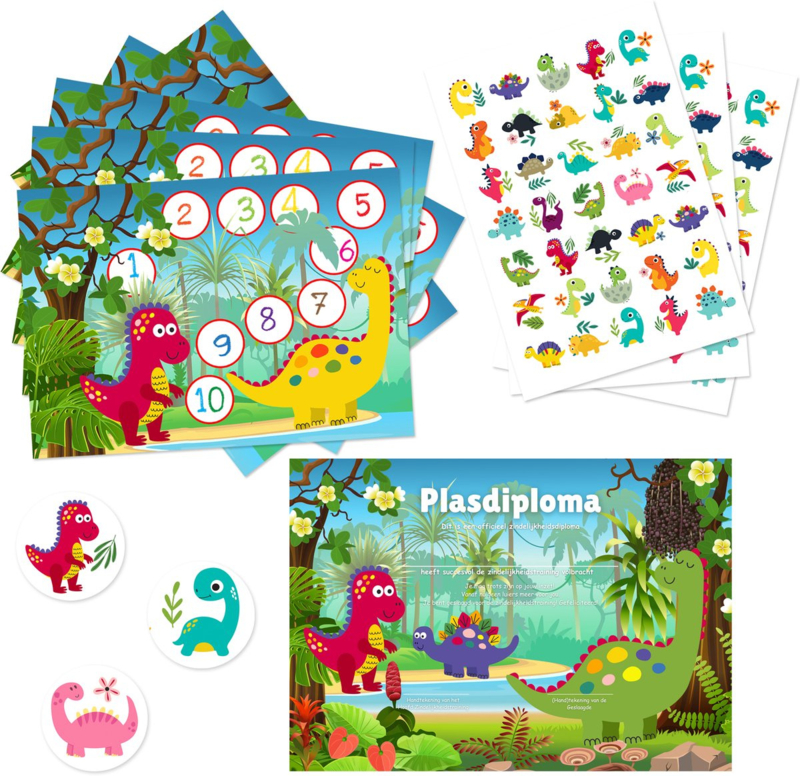 Compleet dino beloningssysteem met stickers en plasdiploma