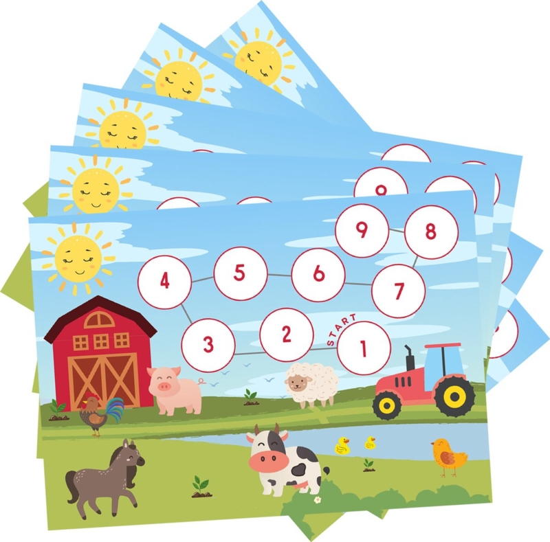 - 5 stevige, dubbelzijdige beloningskaarten met boerderijthema (in totaal 10 keer te gebruiken)