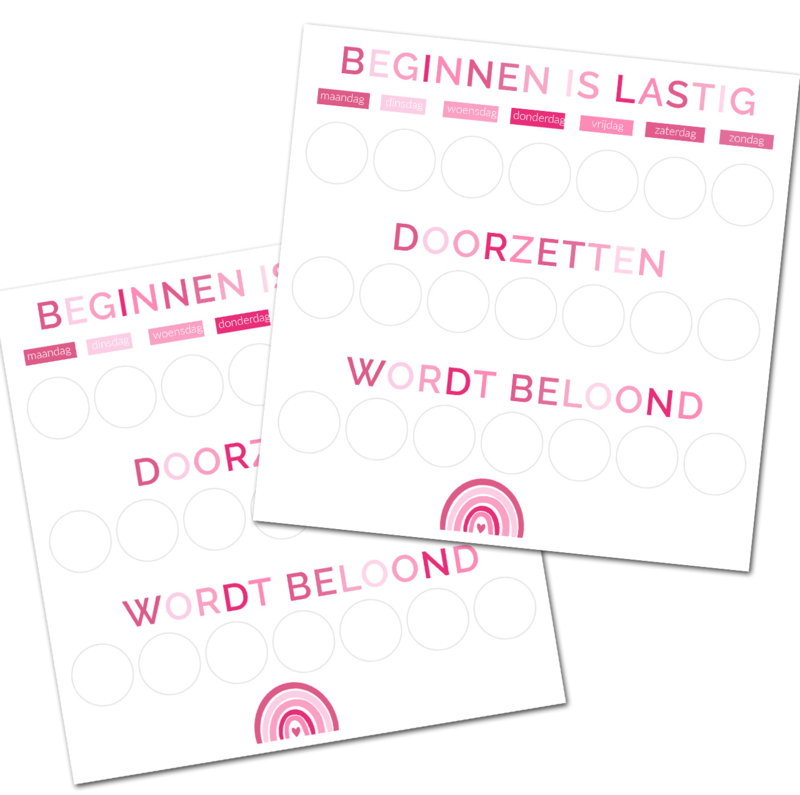 Beloningskaarten + Roze Smiley Stickers - Beginnen is Lastig, Doorzetten wordt Beloond