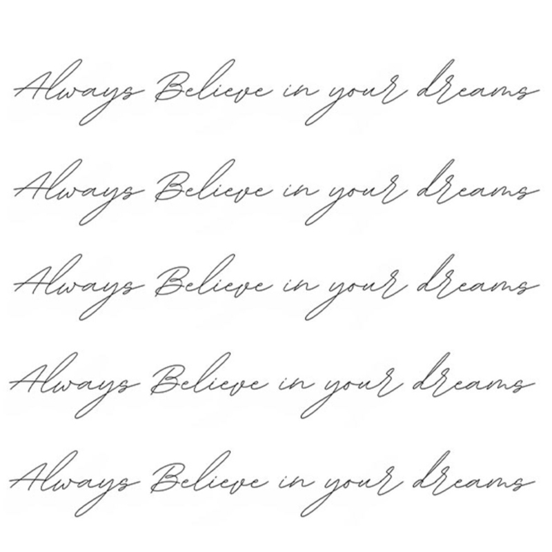 - De set bestaat uit 5 identieke neptattoos van de prachtige tekst 'Always Believe in Your Dreams'