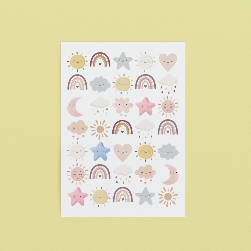 2 Grote Stickervellen Zonnetjes & Regenbogen