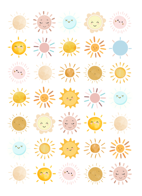 Schattige zonnetjes en regenboogjes stickers. Leuk voor kinderen en voor volwassenen om gezellig mee te knutselen. Gezellig om als beloningsstickers te gebruiken, maar zeker net zo leuk om op een cadeautje of envelop te plakken of om de kinderen lekker mee te laten plakken. Topkwaliteit stickers waar iedereen veel plezier van zal hebben!