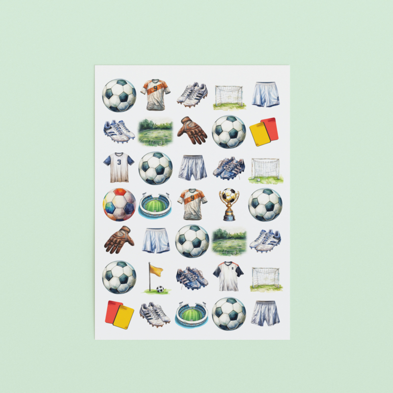 Geweldig leuke voetbalstickers waar iedere voetballer blij van wordt! De twee stickervellen bevatten prachtige stickers van voetballen en alles wat met voetbal te maken heeft! Leuk voor kinderen die lekker knutselen en houden van voetbal. Ook erg leuk om te plakken op een kaartje of cadeautje voor een voetbalfan of in de fotoboeken met voetbalfoto's.