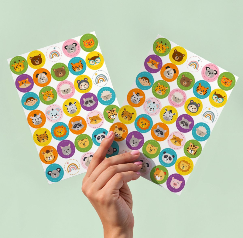 - 2 feuilles d'autocollants (un total de 70 autocollants). Diamètre des autocollants 2,5 cm.